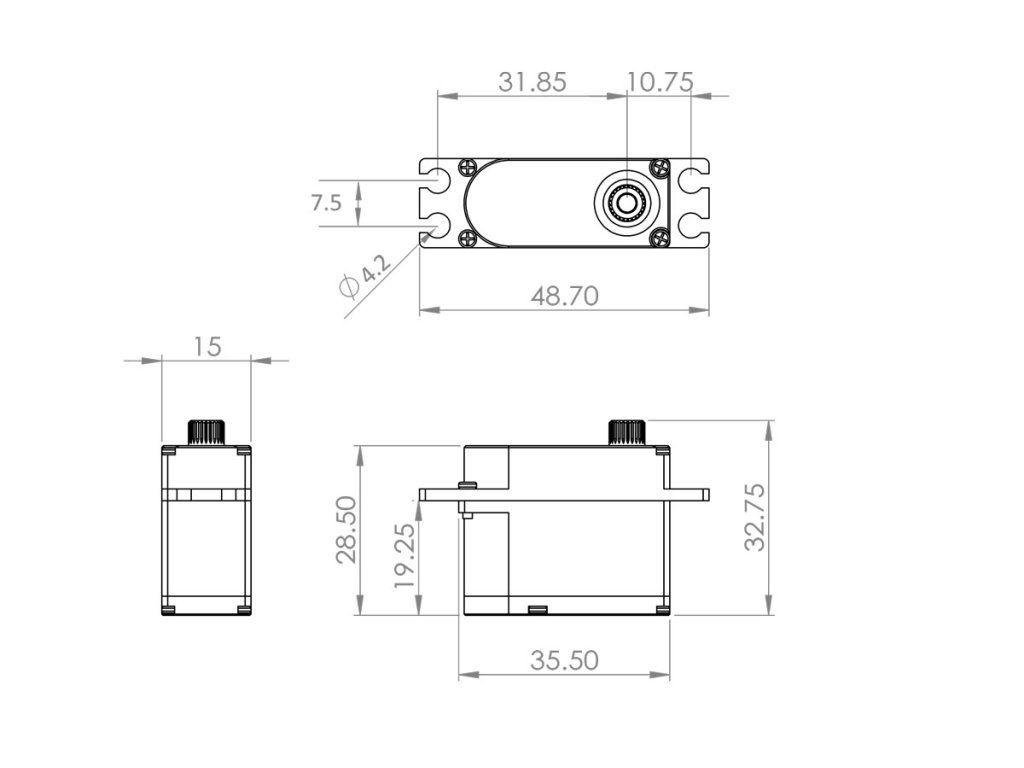 Ultra rychlé úzkopásmové (760µs) digitální miniservo s kovovými převody s výstupní hřídelí uloženou na dvou kuličkových ložiscích. Ideální pro vyrovnávací rotory vrtulníků velikosti 500, kompatibilní s většinou 760µs gyroskopů a flybarless jednotek. Pro dokonalé chlazení i při vysokém zatížení je servo uloženo v hliníkové krabičce.