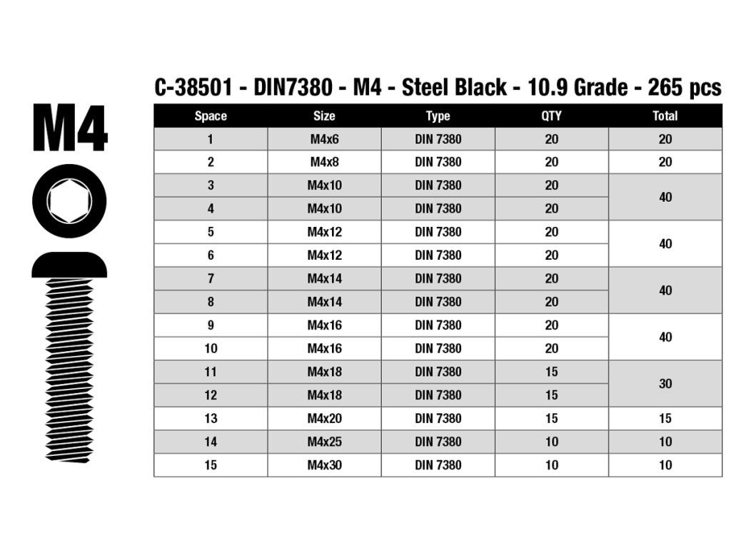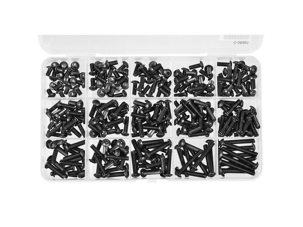 Imbus šrouby s půlkulatou hlavou - sada/box - M4 - ocelové černé, 265 ks.