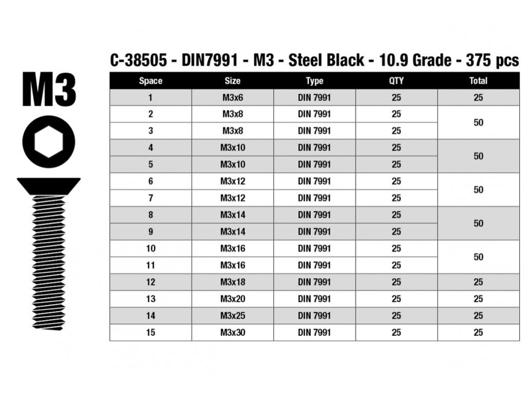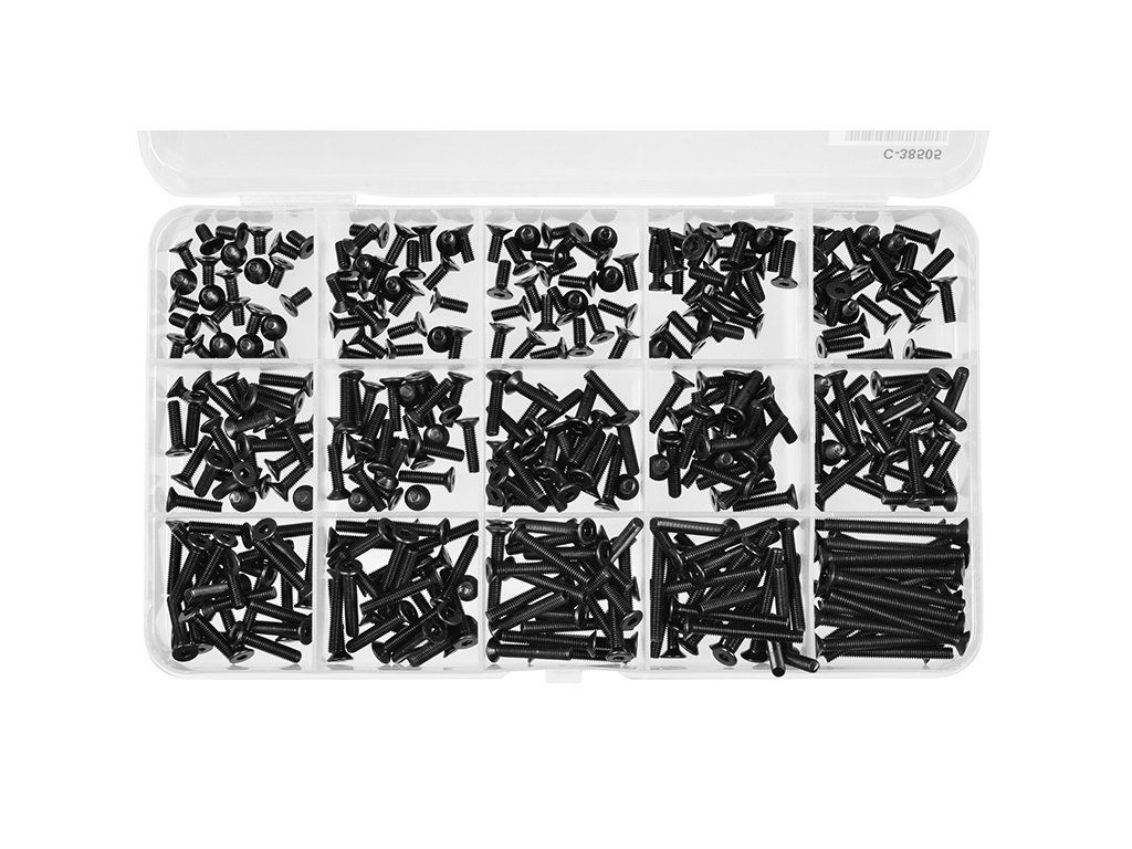 Imbus šrouby s zápustnou hlavou - sada/box - M3 - ocelové černé, 375 ks.