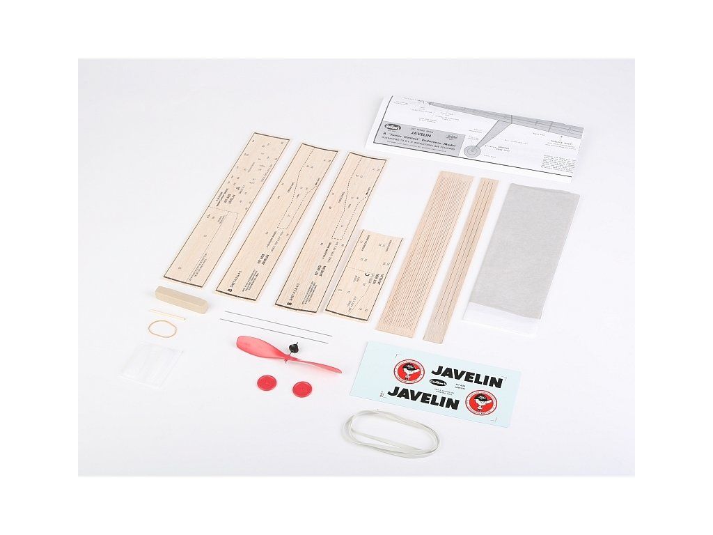 Hornoplošník Javelin představuje ideální první krok pro modeláře, který chce začít stavět minimakety poháněné gumovým svazkem (jako vůbec model pro získání základních zkušeností s klasickou stavbou doporučujeme nejprve postavit např. některý z větroňů A3 nebo A1, jako jsou naše Sojka, Sova, Jiskra nebo Olympic). Naučíte se stavět "žbrdličkovou" kostru trupu i křídla, potahovat papírem - prostě všechny základní dovednosti klasické modelařiny. Přitom té stavby není mnoho, nečekají vás stovky pracovních hodin v dílně, díky vysoce předpracovaným dílům to jde jako po másle. Navíc o postupu stavby není nejmenších pochyb - staví se po číslech! Nejprve díl č. 1, potom č. 2, č. 3...