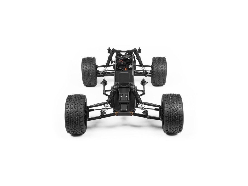 Modely řady Jumpshot FLUX jsou k prasknutí nabité funkcemi, díky kterým budete chtít jezdit bez ustání hodiny a hodiny. Uprostřed šasi typu TVP Savage je umístěno přijímačové pouzdro, chránící přijímač před vnějšími vlivy. Řízení sestává nejen z odolných táhel, ale i z voděodolného serva řízení pro dodatečnou ochranu. Účinný pohon zadní nápravy vám dovolí „ustřelit zadek“ pro neomezenou zábavu, na cestě či v terénu! Výtečný motor FLUX MMH-4000, testovaný napříč celou naší řadou 1:10 modelů, spolupracuje s robustním regulátorem otáček FLUX EMH-3S, díky kterému lze použít 2S nebo 3S hnací akumulátor dle vašeho výběru, který dodá potřebnou šťávu. V zadní části modelu se vyskytují ještě pevnější, ultra-odolné převody, diferenciál a kovové pouzdro motoru, to vše v ochranném krytu. V přední části se nachází V2 servosaver s posilněnými rameny zavěšení, které dělají čumák ještě pevnější, speciálně pro jízdu brutálním terénem.