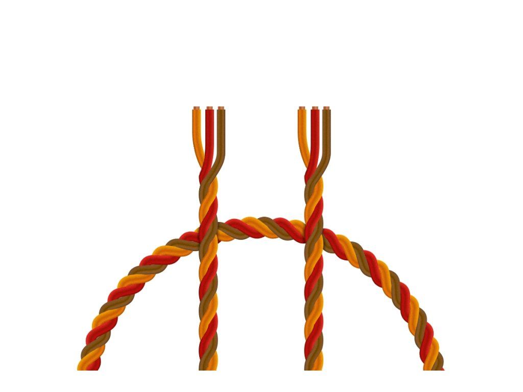 Kroucený třížilový kabel velmi tlustý v barvách JR (hnědá/červená/oranžová) s PVC izolací, průřez vodičů 0,34 mm2. Vysoce ohebný, lanka ze 88 pramenů 0,07 mm, max. 48 V, 8A. Průměr 1,5/2,9 mm. Vyrobeno v Německu. Cena za 1 meterDoplňkové parametry