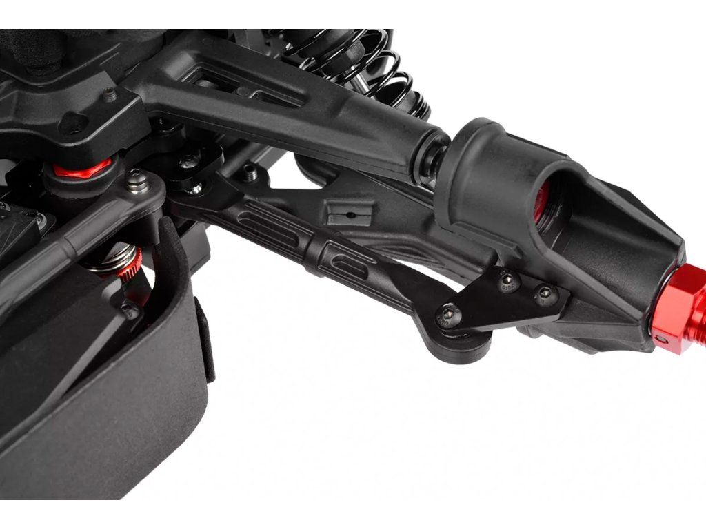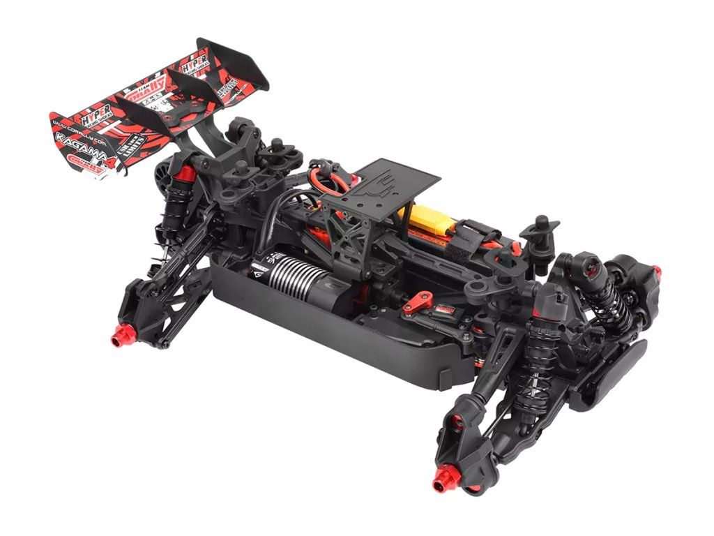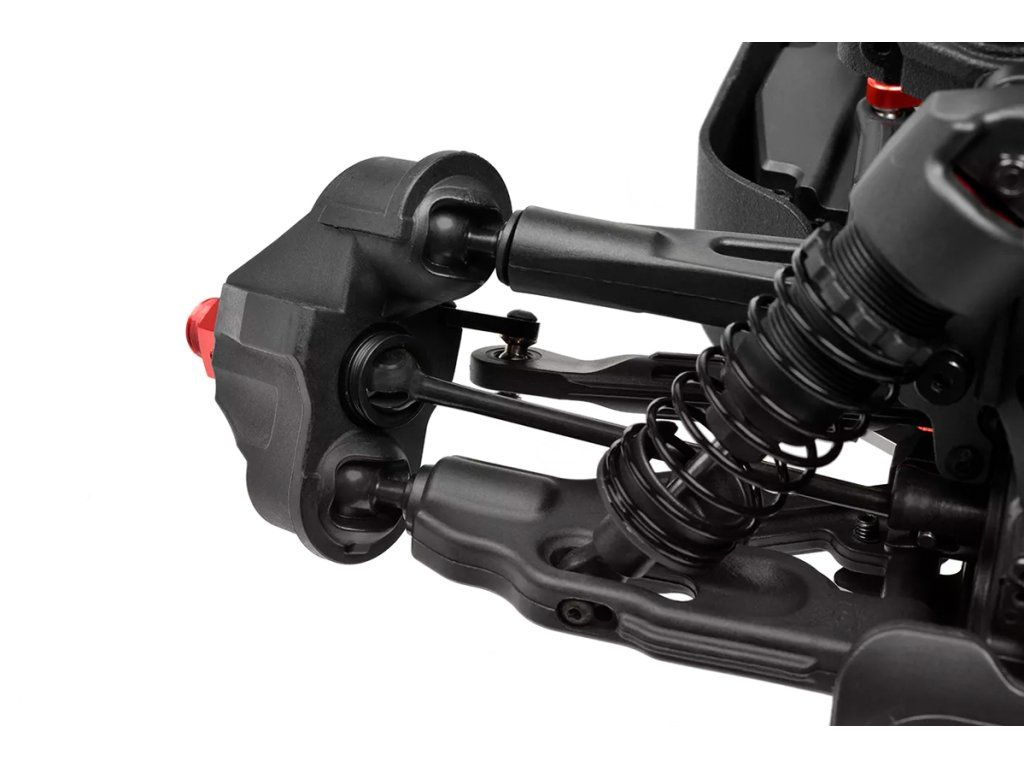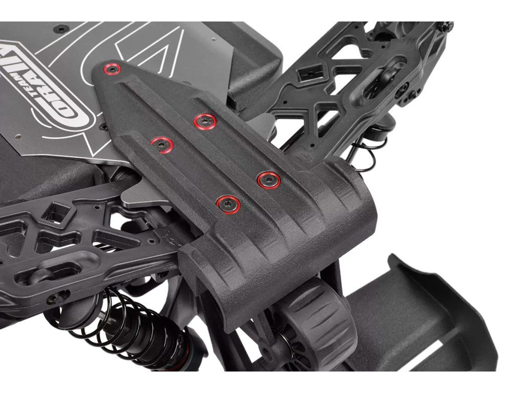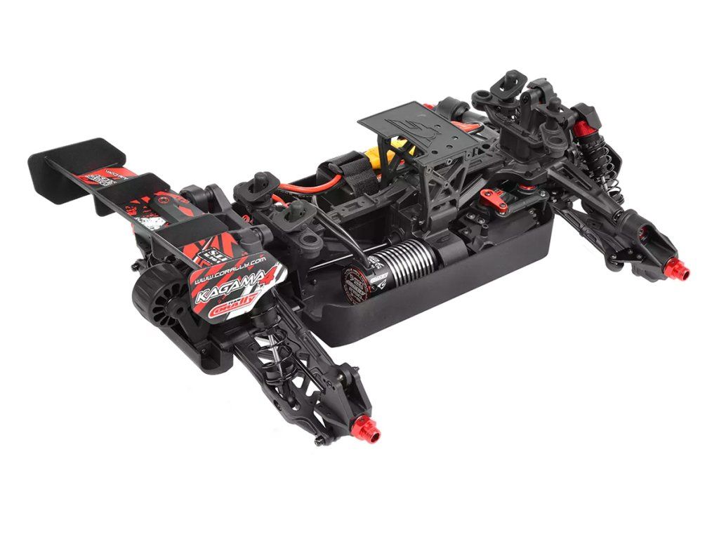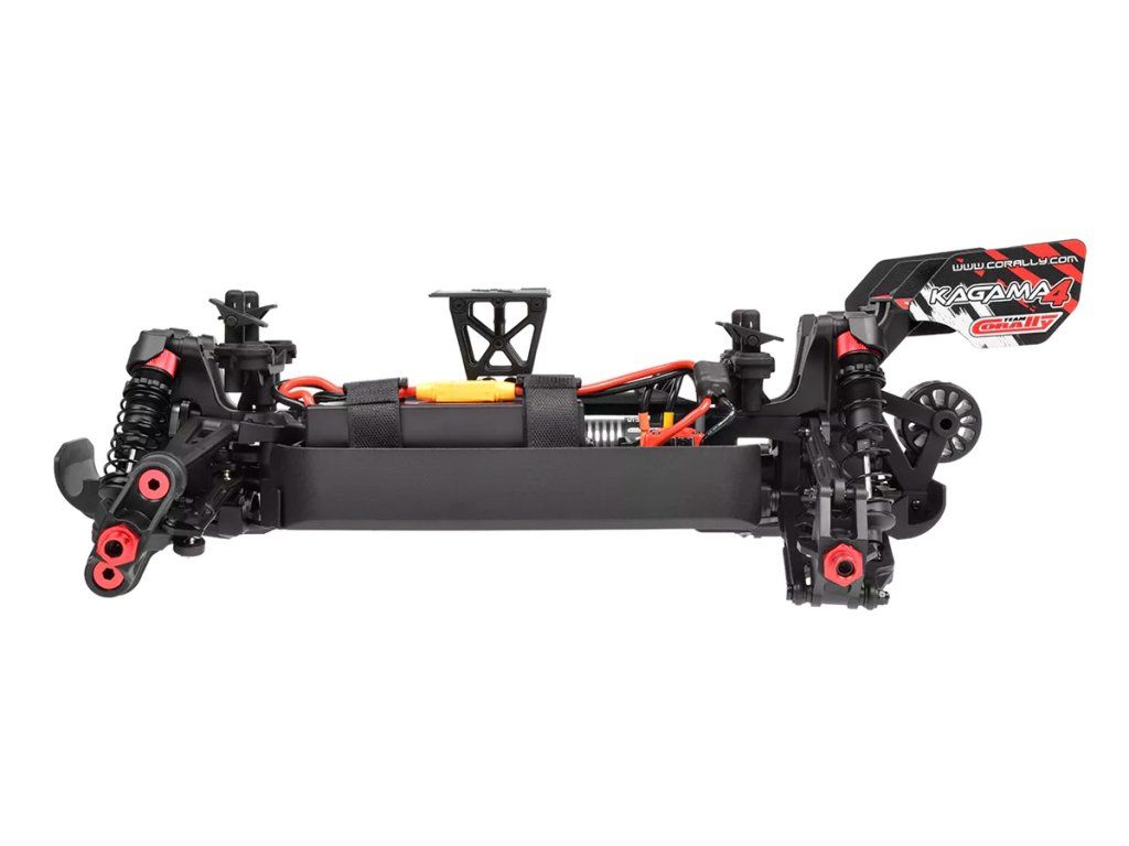 Jeho hybridní hliníkový držák motoru nabízí tři polohy motoru pro přesné nastavení vůle pastorku. Zesílené hnací ústrojí s ocelovými unašeči a robustním hlavním převodovým převodem 52T zajišťuje dlouhou životnost. Široké těhlice z Kagamy a Sketeru dodávají stabilitu a schopnosti v terénu, zatímco nové wheelie kolečko pomáhá zvládat obrovský výkon. Od střídavého motoru Kuron 725 až po regulátor Torox 135 - každá součástka přispívá ke vzrušující maximální rychlosti přes 80 km/h. Vysílač CT2S 2,4 GHz, systém vyztužení podvozku a křídlo s vysokou přítlačnou silou doplňují balíček, takže Kagama4 je skutečným důkazem odkazu inovací a výkonu firmy Team Corally.