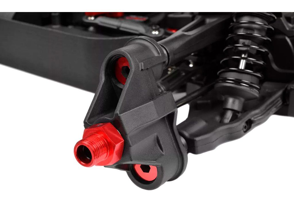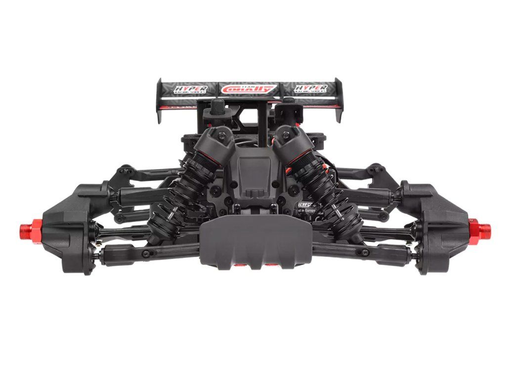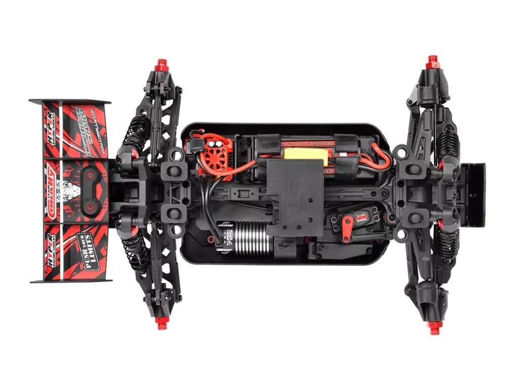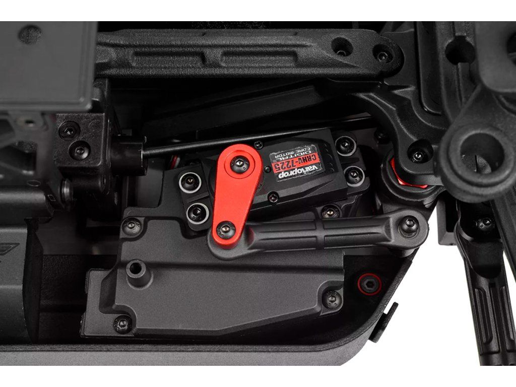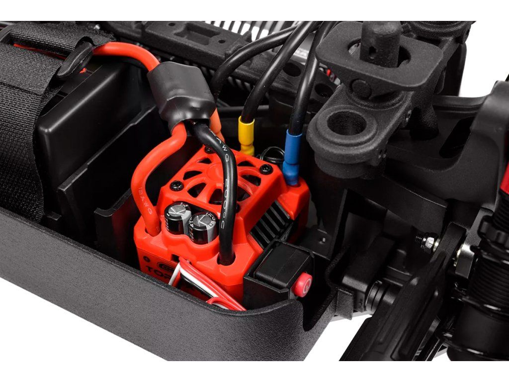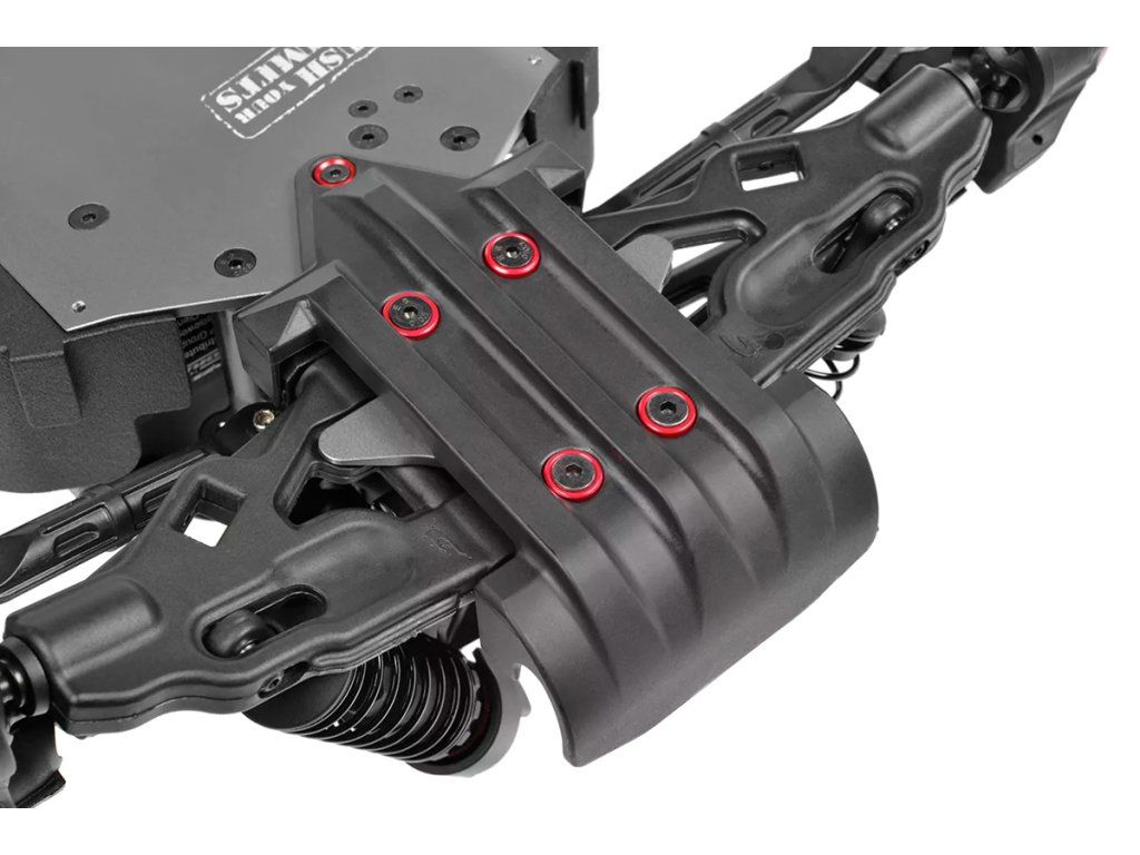 Jeho hybridní hliníkový držák motoru nabízí tři polohy motoru pro přesné nastavení vůle pastorku. Zesílené hnací ústrojí s ocelovými unašeči a robustním hlavním převodovým převodem 52T zajišťuje dlouhou životnost. Široké těhlice z Kagamy a Sketeru dodávají stabilitu a schopnosti v terénu, zatímco nové wheelie kolečko pomáhá zvládat obrovský výkon. Od střídavého motoru Kuron 725 až po regulátor Torox 135 - každá součástka přispívá ke vzrušující maximální rychlosti přes 80 km/h. Vysílač CT2S 2,4 GHz, systém vyztužení podvozku a křídlo s vysokou přítlačnou silou doplňují balíček, takže Kagama4 je skutečným důkazem odkazu inovací a výkonu firmy Team Corally.