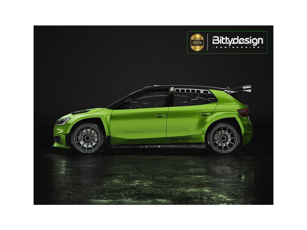 S odkazem na populární šampionát „Rally2“ optimalizoval Bittydesign proporce a rozměry tak, aby byla karoserie Fabia RS Rally2 použitelná se všemi 190mm elektrickými modely.