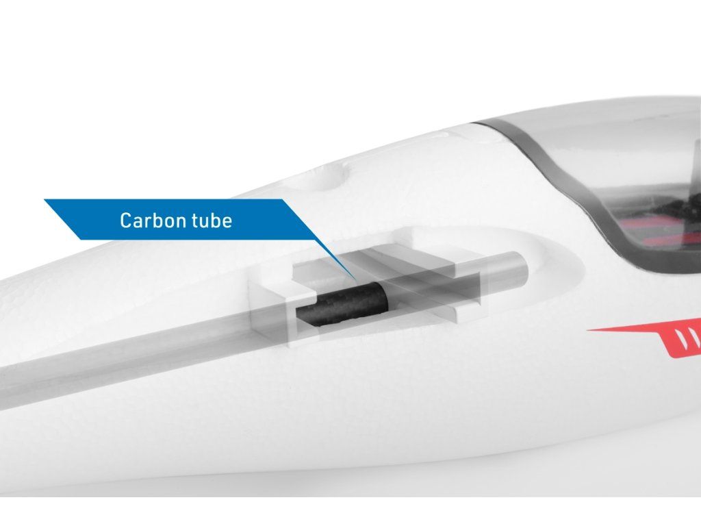 Trup modelu je zhotoven z vysoce odolného pěnového EPO (extrudovaného polyolefinu) s důkladnými vnitřními uhlíkovými výztuhami. V přídi je nainstalován střídavý elektromotor C3548-750 se sklopnou vrtulí 11x8“ a regulátorem KAVAN R-50SB s výkonným BEC stabilizátorem napájení potřebným pro napájení 6 serv na palubě. Kryt kabiny je odnímatelný, upevňuje se pomocí čepu vpředu a magnetu vzadu. V přídi najdete dostatek prostoru pro pohonný akumulátor a přijímač. Serva směrovky a výškovky jsou uložena v kýlovce, kormidla ovládají krátkými přímými drátovými táhly.