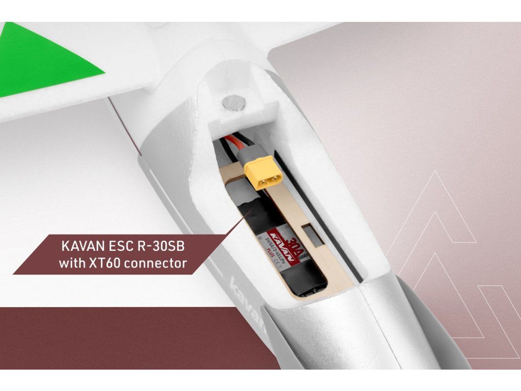 Trup s namontovaným motorem C2217-1200, regulátorem KAVAN R-30B Plus (s rozšířenými možnostmi programování) a servy směrovky a výškovky je vylisován z pěnového EPO. Kryt kabiny je odnímací s magnetickým uzávěrem. Dvoudílné křídlo s uhlíkovými nosníky je rovněž vylisováno z EPO, křidélka jsou ovládána 2 servy uloženými v křídle s krátkými přímými drátovými táhly. Poloviny křídla se spojují spojkou ze slitiny hliníku, zajišťují se nasazením plastové spojovací desky a k trupu upevňují dvojicí šroubů. Ocasní plochy v klasickém uspořádání jsou vylisovány z EPO, jsou ovládány pomocí drátových lanovodů. K trupu se upevňují pomocí dvojice šroubů. Sklopná vrtule 8,5×6“ (průměr je dán kuželem většího průměru s delším trámcem) používá standardní listy 8×6“. Chlazení motoru, regulátoru a akumulátoru napomáhají další vstupy chladícího vzduchu na bocích přídě, nezbytný výstupní otvor pro ohřátý vzduch je na spodku trupu v prostoru pod křídlem.