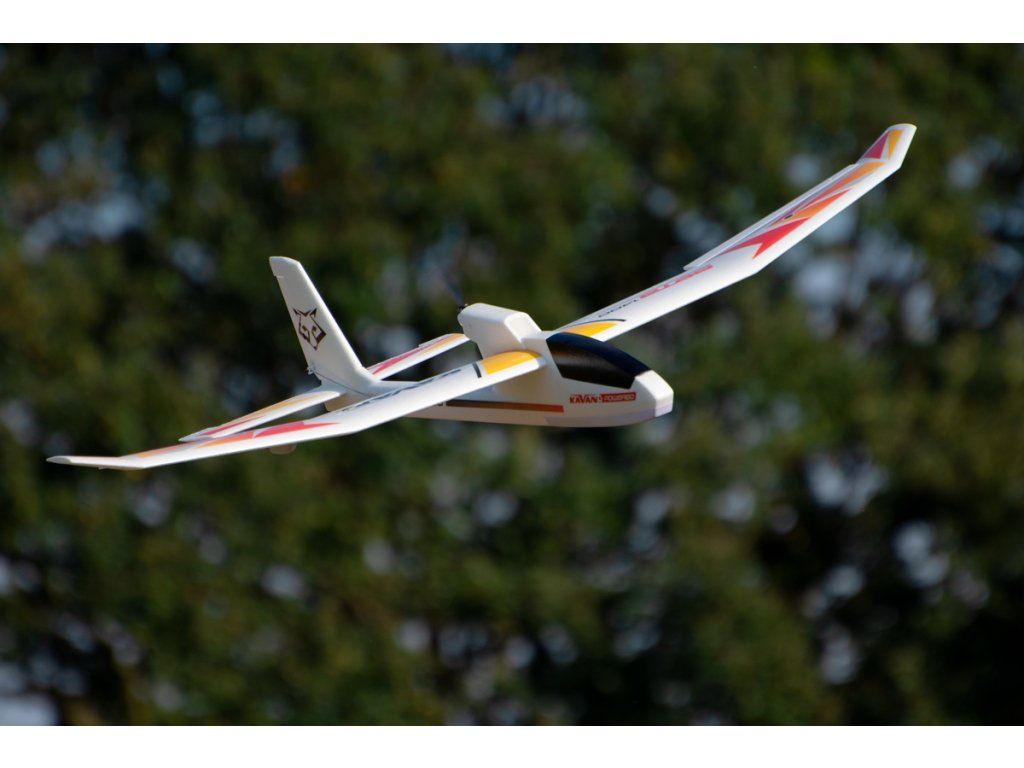 K ovládání modelu budete potřebovat přinejmenším čtyřkanálovou RC soupravu. V tom případě se obě serva křidélek zapojují pomocí Y-kabelu do jednoho kanálu. Při zapojování přijímače se řiďte návodem k obsluze vaší RC soupravy. Ideální je, pokud máte aspoň pětikanálovou počítačovou RC soupravu, která umožňuje nezávislé ovládání serv křidélek. V tom případě můžete nastavit diferenciaci výchylek křidélek; pro začátek doporučujeme 50% - tj. výchylka křidélka dolů je poloviční ve srovnání s výchylkou nahoru. Užitečné je také je mixovat křidélka tak, aby se současně vychylovaly vzhůru ve funkci aerodynamické brzdy pro usnadnění přistání. To oceníte na menších přistávacích plochách a zvláště při létání na svahu. Při nastavování aerodynamických brzd dbejte na to, aby i při plném vychýlení křidélek nahoru ve funkci brzdy byla zachována možnost jejich plné výchylky nahoru v roli křidélek.