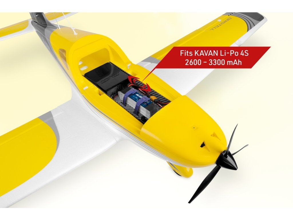 Motor *C3548-800 Regulátor *KAVAN R-50SB Vrtule *10x6“ třílistá Akumulátor KAVAN 14,8V 2600 mAh 40/80C nebo KAVAN 14,8V 3300 mAh 40/80C Serva *7x mikro RC souprava min. 7 kanálů počítačová *) Součást ARF setu