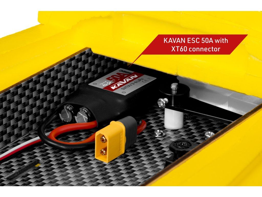 Trup modelu je zhotoven z vysoce odolného pěnového EPO (extrudovaného polyolefinu) s důkladnými vnitřními uhlíkovými výztuhami. V přídi je nainstalován střídavý elektromotor C3548-800 s třílistou vrtulí 10x6“ a regulátorem KAVAN R-50SB s výkonným BEC stabilizátorem napájení potřebným pro napájení 7 serv na palubě. Kryt kabiny je odnímatelný, upevňuje se pomocí čepu vpředu a dvou mechanických západek vzadu. V prostoru kabiny najdete dostatek prostoru pro pohonný akumulátor a přijímač.