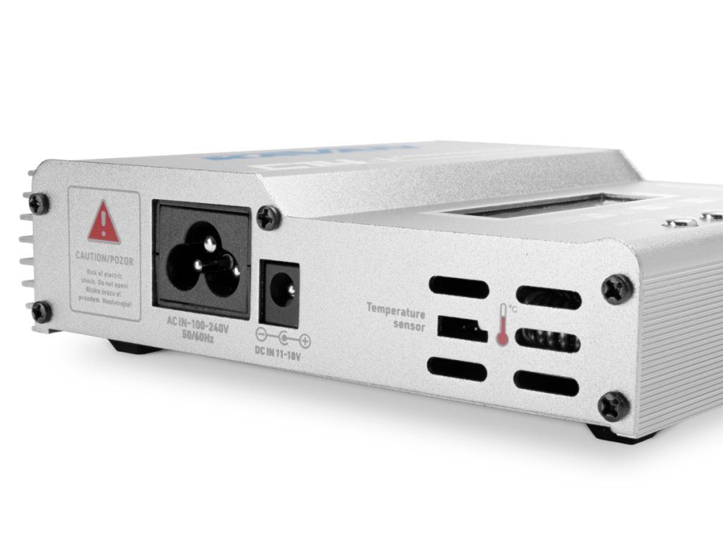 - Pro nabíjení a vybíjení 1 – 15 NiCd/NiMH článků, 1 – 6 Li-ion/LiPo/LiFe článků nebo 2- 20 V olověných akumulátorů