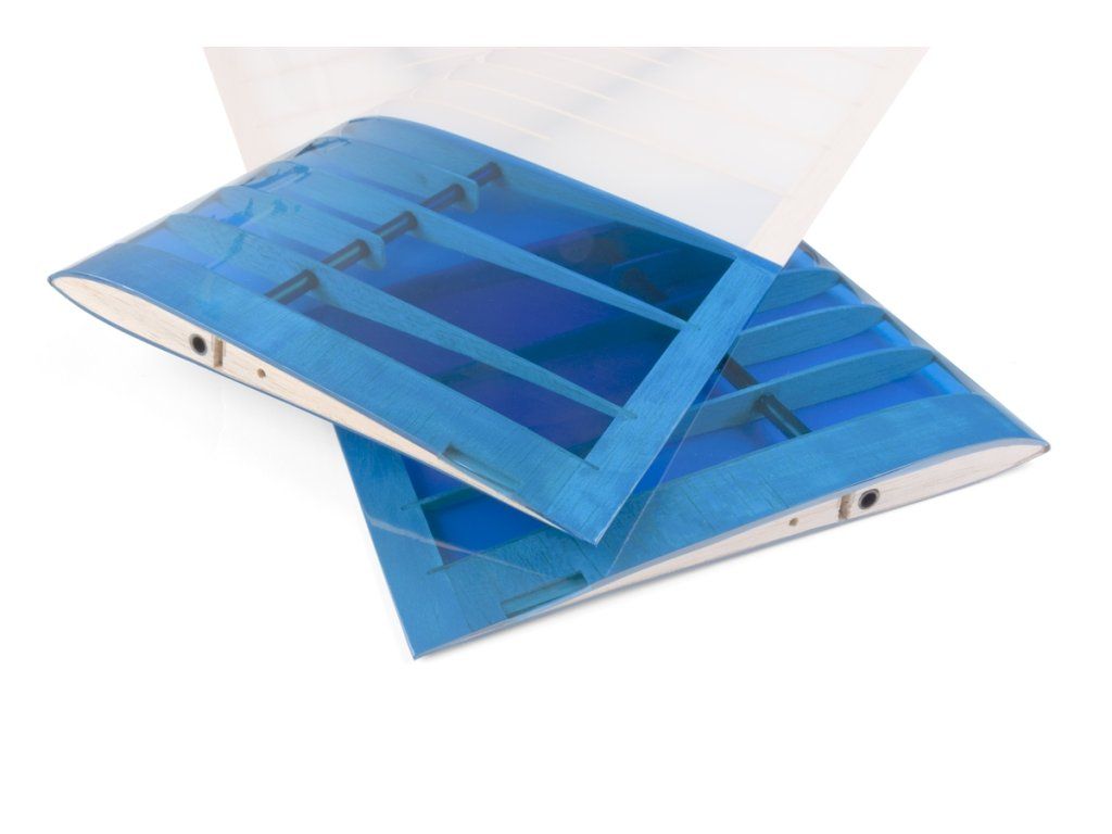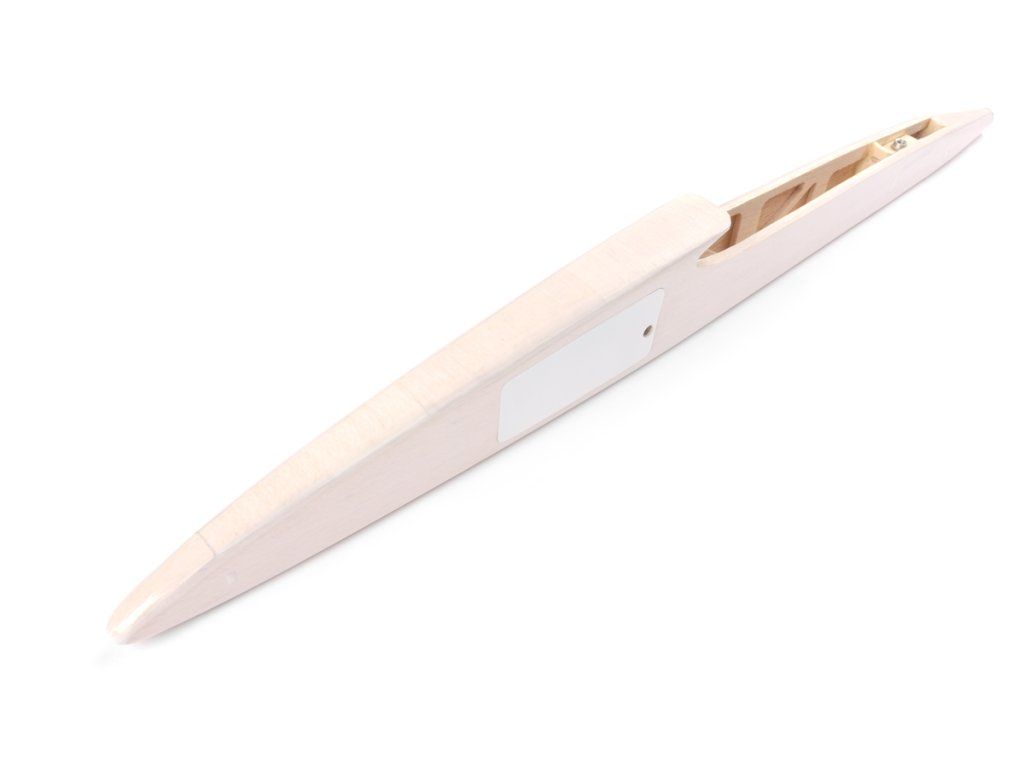 Ocasní plochy jsou deskové, lepené z CNC vyřezávaných balsových dílů. Kormidla jsou ovládána drátovými lanovody.