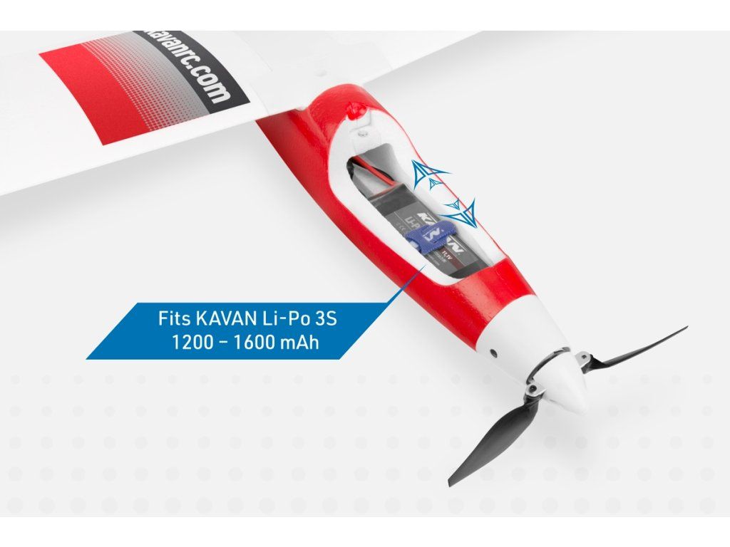 Motor *C2714-1450 Regulátor *KAVAN R-20B Vrtulové listy *7x6“ Akumulátor KAVAN 11,1V 1200 mAh 30/60C nebo KAVAN 11,1V 1600 mAh 30/60C Serva *4x GO-09 RC souprava min. 4 kanály s mixem pro motýlkové ocasní plochy *) Součást ARF setu