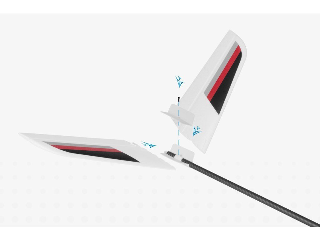Odnímatelné motýlkové ocasní plochy jsou z rovněž z pěnového EPO, k trupu se upevňují plastovým šroubem.