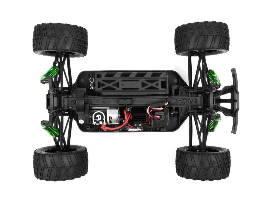Tento monster truck je vybaven spolehlivým pohonem 4WD, který zajišťuje stabilitu a trakci v nejrůznějších podmínkách. Jeho kartáčový elektromotor s vysokým točivým momentem o velikosti 550 mu propůjčuje rychlost až 35 km/h.