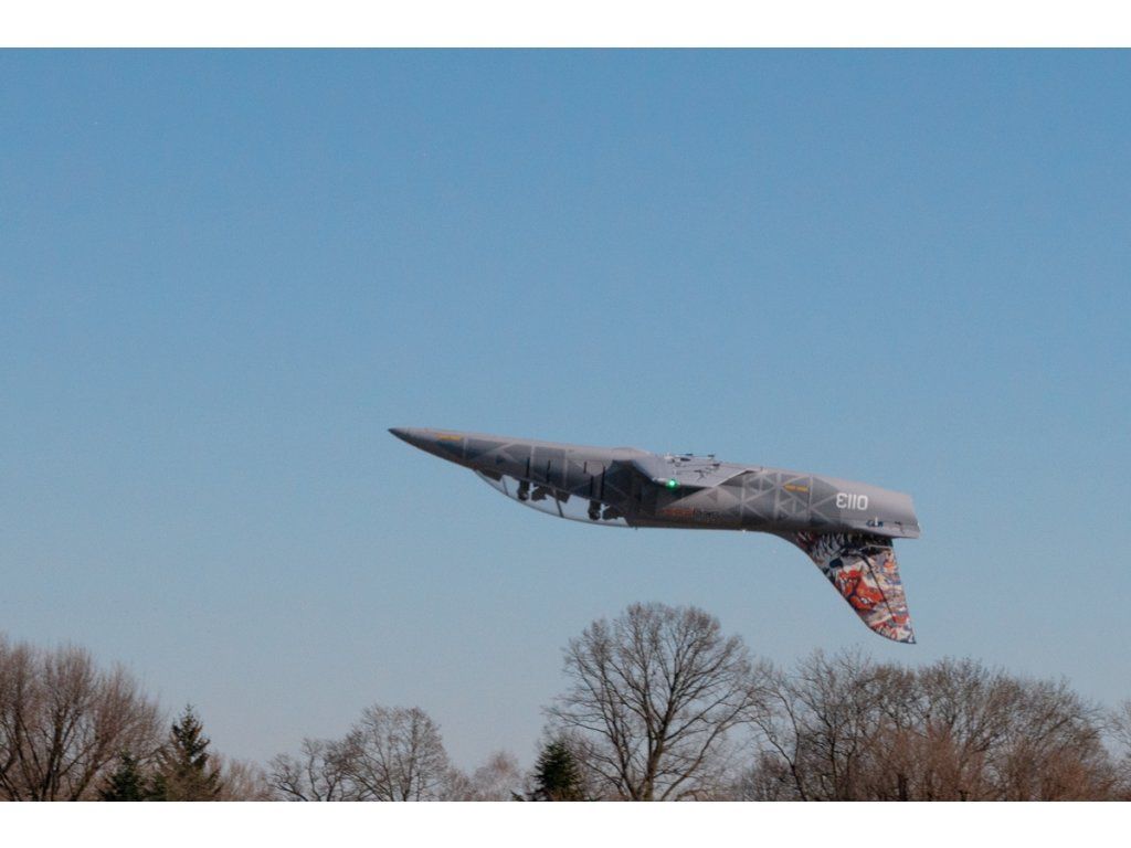 Křídlo modelu z pěnového EPO je dvojdílné s uhlíkovými nosníky a uhlíkovou trubkovou spojkou. Na místě je zajištěno šrouby. Křidélka i klapky jsou ovládány nezávisle vždy dvěma servy s krátkými přímými drátovými táhly a nechybí ani funkční poziční a přistávací LED světla.
