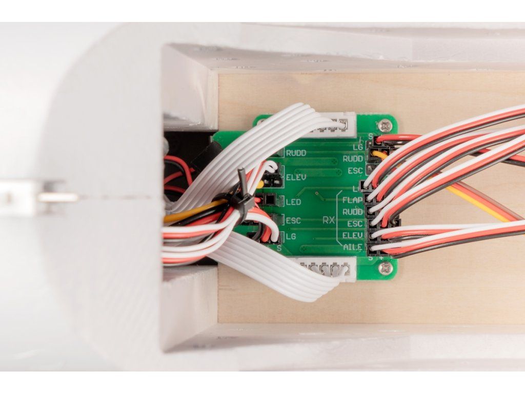 Pro ovládání modelu vystačíte i jen se šestikanálovou počítačovou RC soupravou bez speciálních funkcí – v základním provedení jsou křidélka, klapky, výškovka, směrovka a servo příďové nohy zapojeny pomocí zapojovací desky nainstalované v prostoru kabiny vždy jen do jednoho kanálu. Deska také zajišťuje napájení LED světel; připojený sekvencer má na starosti ovládání zatahovacího podvozku. V návodu samozřejmě nechybí důkladná tabulka s prověřeným výchozím nastavením výchylek kormidel, abyste L-39 snadno připravili k letu.