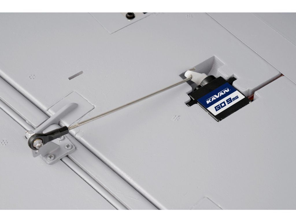 Ocasní plochy jsou z rovněž z pěnového EPO. Serva směrovky a výškovky jsou uložena v kýlovce a trupu; kormidla ovládají krátkými přímými drátovými táhly.