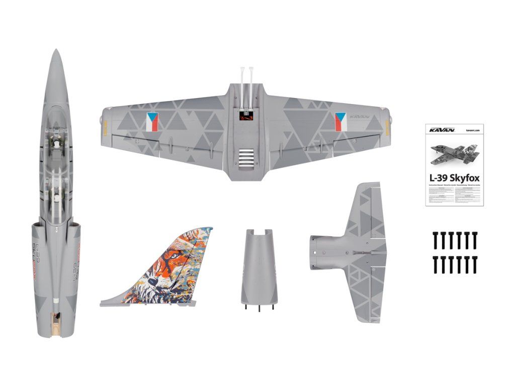 Sériová výroba L-39 Skyfox začala v květnu 2023 stroji pro české, maďarské a vietnamské letectvo; souběžně probíhá i program modernizace původních L-39 Albatros s použitím motorů a avioniky Skyfoxe. České cvičné proudové letouny tak nezmizí z oblohy ani v následujících letech... A vy si teď můžete užít létání s polomaketou tohoto nádherného stroje o rozpětí 1088 mm poháněnou 80mm dmychadlem s výkonným střídavým motorem.