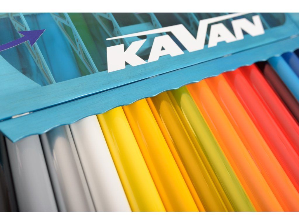 Nažehlovací fólie KAVAN je vyráběna z velmi tenkého a lehkého polyesterového polymeru s vysokou pevností pokrytého vrstvou tepelně aktivovaného lepidla s pigmenty vynikajícími vysokou kryvostí. Dodává se v rolích o šířce 64 cm a délce 2 m, spodní strana s lepidlem je chráněna čirou fólií.