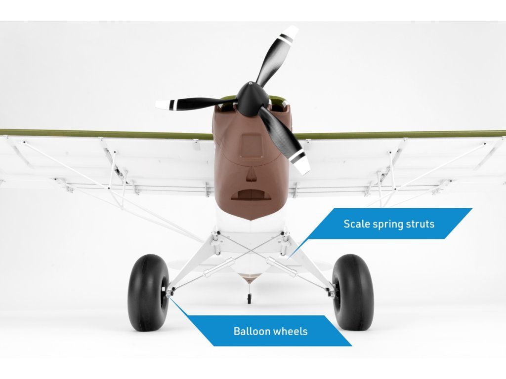Hlavní podvozek je pevný, duralový s odpruženými maketovými vzpěrami. Drátová ostruha je spřažená se směrovkou.
