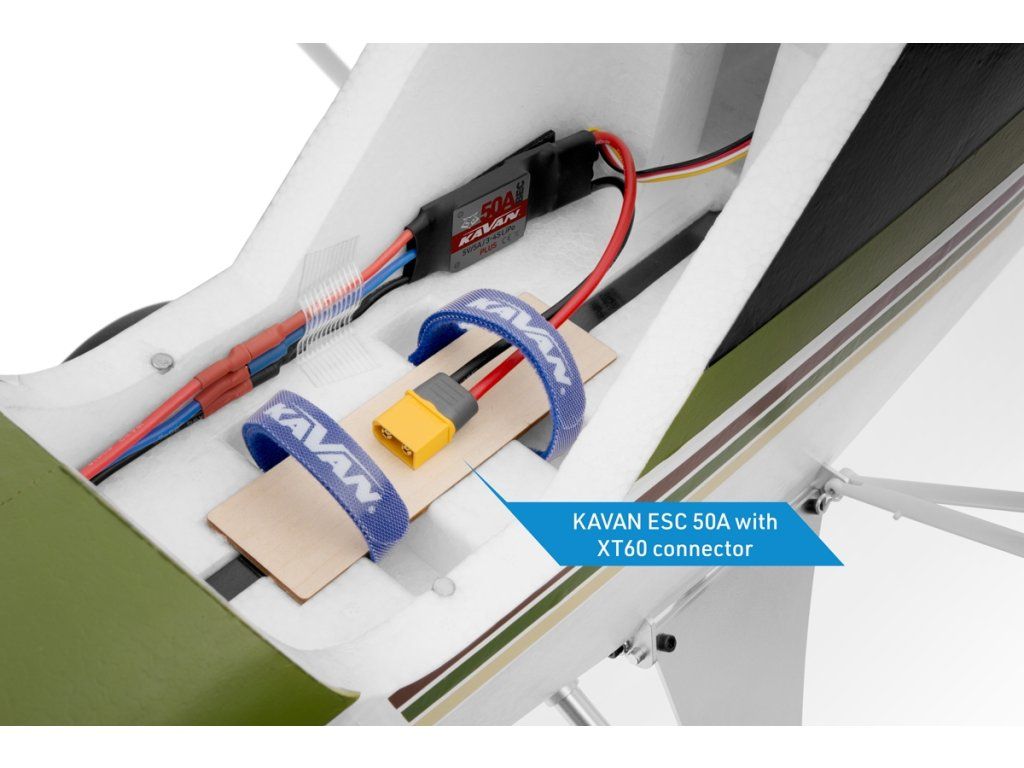 Trup modelu je zhotoven z vysoce odolného pěnového EPO (extrudovaného polyolefinu) s důkladnými vnitřními uhlíkovými výztuhami. V přídi je nainstalován střídavý elektromotor C3548-800 s třílistou vrtulí 10×6“ a regulátorem KAVAN R-50SB Plus s výkonným BEC stabilizátorem napájení potřebným pro napájení 6 serv na palubě. V přídi pod odnímatelným krytem najdete dostatek prostoru pro pohonný akumulátor.