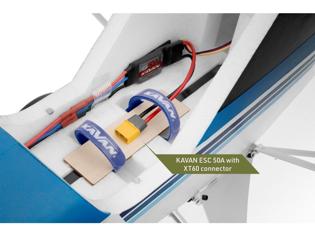 Trup modelu je zhotoven z vysoce odolného pěnového EPO (extrudovaného polyolefinu) s důkladnými vnitřními uhlíkovými výztuhami. V přídi je nainstalován střídavý elektromotor C3548-800 s třílistou vrtulí 10×6“ a regulátorem KAVAN R-50SB Plus s výkonným BEC stabilizátorem napájení potřebným pro napájení 6 serv na palubě. V přídi pod odnímatelným krytem najdete dostatek prostoru pro pohonný akumulátor.