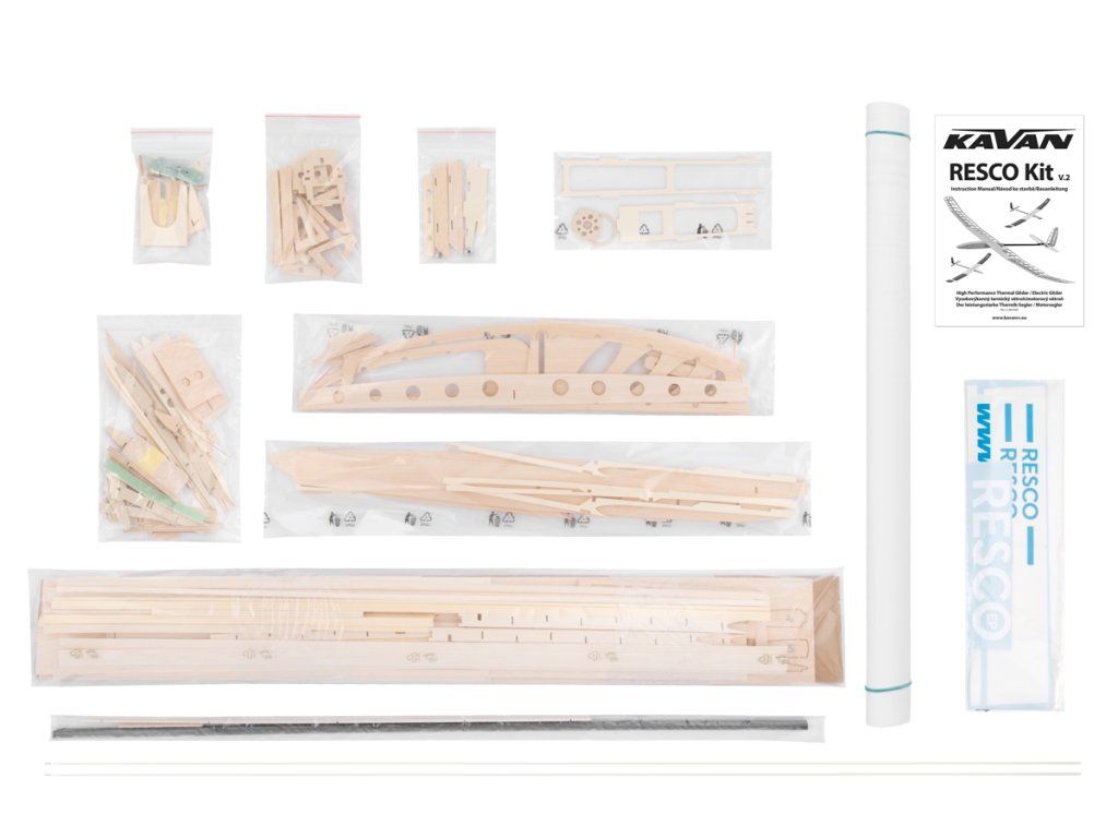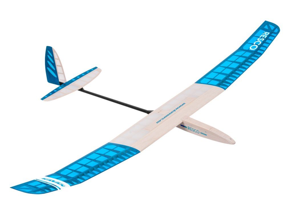 Stavebnice vysokovýkonného termického větroně klasické velmi lehké celobalsové konstrukce v rozsypu, který můžete také snadno upravit pro pohon střídavým elektromotorem třídy AXI 2208-2212. RESCO je ideálním projektem pro modeláře, který se chce naučit stavět modely, a zvládá pilotáž začátečnických modelů s ovládanou směrovkou a výškovkou. Ostatně, RESCO může být docela dobře i váš úplně první RC model. Díky promyšlené konstrukci s CNC vyřezávanými díly opatřenými výstupky a zářezy, které do sebe zapadají jako díly puzzle skládačky, jde stavba velmi rychle a snadno. Přitom je RESCO „soutěžní plnokrevník“, s nímž můžete úspěšně bojovat o místa „na bedně“ v kategorii F3-RES 2M. Vzhledem k tomu, že se v poslední době prosazuje ortodoxnější výklad pravidel, představujeme vám RESCO v upraveném, pravověrně čistokrevném provedení s dřevěným pylonem pro vodorovnou ocasní plochu.