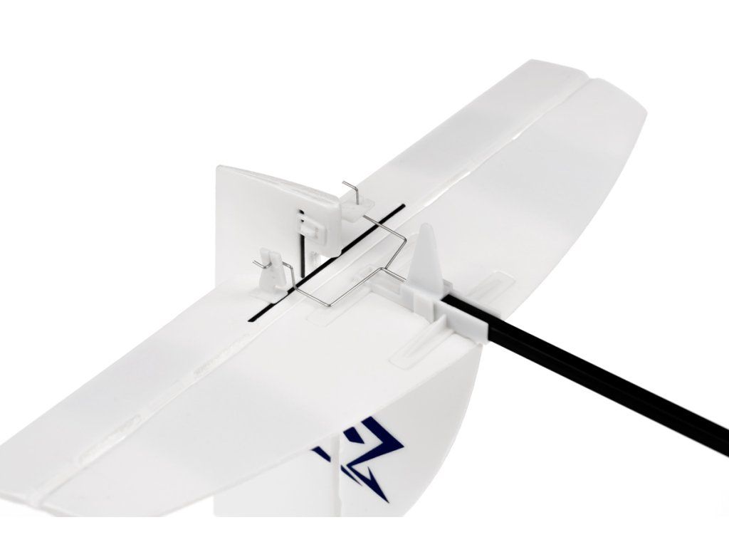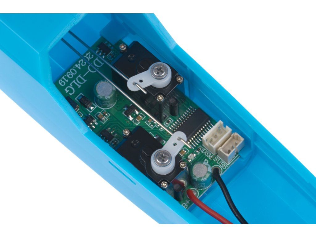 Pro ovládání modelu budete potřebovat nejméně čtyřkanálovou RC soupravu s miniaturním přijímačem (schopným pracovat s napájením z 1S LiPo akumulátoru), který je vybaven sériovým S.BUS nebo DSM2 výstupem. Přijímač prostě připojíte do odpovídajícího vstupu na desce elektroniky v modelu - přiřazení kanálů dekodéru je pevné: výškovka je kanál 2, směrovka kanál 4.