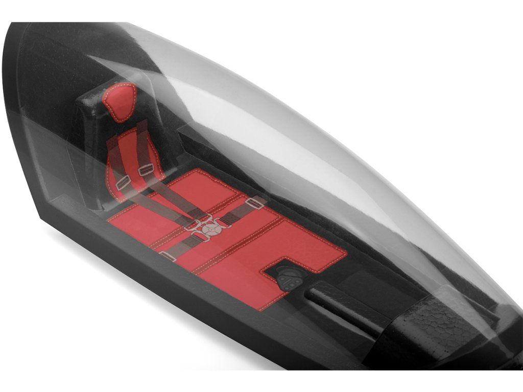 Trup modelu je zhotoven z vysoce odolného pěnového EPO (extrudovaného polyolefinu) s důkladnými vnitřními uhlíkovými výztuhami. V přídi je nainstalován střídavý elektromotor C3548-750 se sklopnou vrtulí 11x8“ a regulátorem KAVAN R-50SB s výkonným BEC stabilizátorem napájení potřebným pro napájení 4 silných mikroserv na palubě. Kryt kabiny je odnímatelný, upevňuje se pomocí čepu vpředu a magnetu vzadu. V přídi najdete dostatek prostoru pro pohonný akumulátor a přijímač. Serva směrovky a výškovky jsou uložena v kýlovce, kormidla ovládají krátkými přímými drátovými táhly.