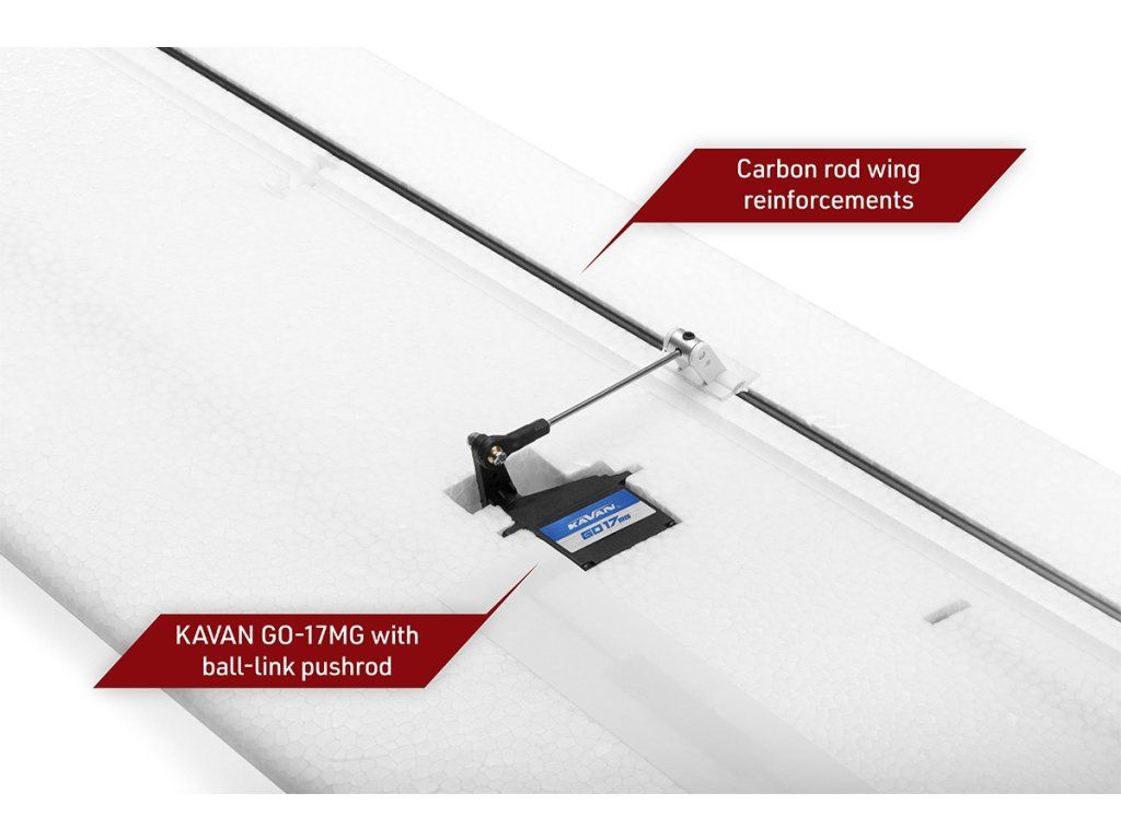 Motor *C3548-750 Regulátor *KAVAN R-50SB Vrtulové listy *11x8“ Akumulátor KAVAN 14,8V 2200 mAh 30/60C nebo KAVAN 14,8V 2600 mAh 40/80C Serva *4x GO-17MG RC souprava min. 6 kanálů počítačová *) Součást ARF setu