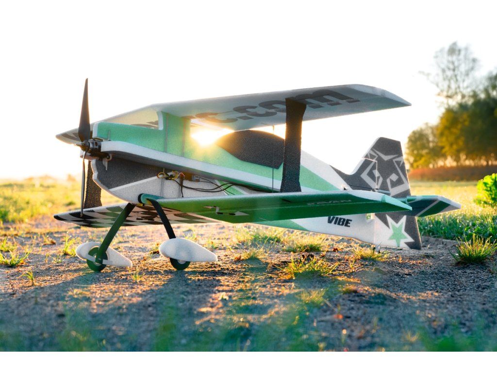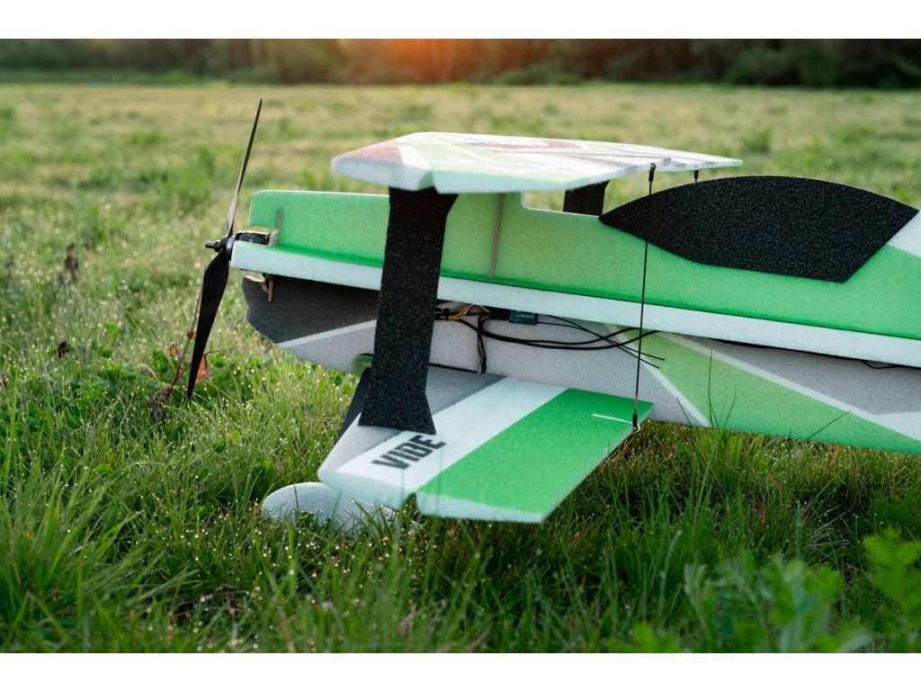 VIBE je vysokovýkonný dvouplošný 3D akrobatický speciál kategorie park-fly z pěnového EPP určený pro pohon střídavými elektromotory o výkonu 350-500 W. Pár hodin s vteřinovým lepidlem v ruce stačí pro dokončení tohoto modelu schopného létat obraty klasické F3A sestavy, stejně jako viset na vrtuli a provádět všechny ostatní 3D kousky! Je určen i pro méně zkušené piloty; s menšími výchylkami s ním může létat každý, kdo má již aspoň nějakou praxi s akrobacií a je schopen spolehlivě létat s předcházejícím modelem přemet, souvrat a výkrut. Díky nízké hmotnosti modelu případné havárie v důsledku „zapletení rukou“ příliš nebolí – a EPP díly se tak snadno opravují!