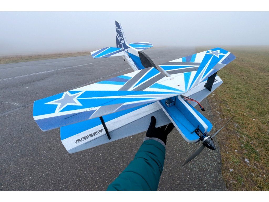 Jednodílná křídla s rozměrnými křidélky mají souměrný profil, pevnost jim dodávají uhlíkové nosníky a ve spodním křídle samozřejmě nechybějí připravené šachty pro serva. Vzpěra baldachýnu horního křídla vyztužená překližkovými díly je součástí trupu, mezikřídelní vzpěry jsou z EPP vyztuženého uhlíkem. Trup je profilový s vodorovnou částí důkladně vyztuženou uhlíkovými pásnicemi a svislou částí s velkou boční plochou pro dokonalé chování v nožovém letu. Promyšlená konstrukce zahrnuje překližkové motorové lože ukotvené do trupu pomocí uhlíkových pásnic. V trupu jsou připravené šachty serva výškovky a směrovky. Ocasní plochy jsou rovněž z uhlíkem vyztuženého EPP. Krátkými přímými uhlíkovými nebo ocelovými táhly jsou ovládána křidélka, směrovka i výškovka. Hlavní podvozek je uhlíkový se dvěma lehkými koly a EPP kryty; k opěrné laminátové desce ukotvené do trupu laminátovými držáky se upevňuje 2 šrouby. Ostruha s 3D tištěnou konzolí a lehkým pěnovým kolem je spřažena se směrovkou.