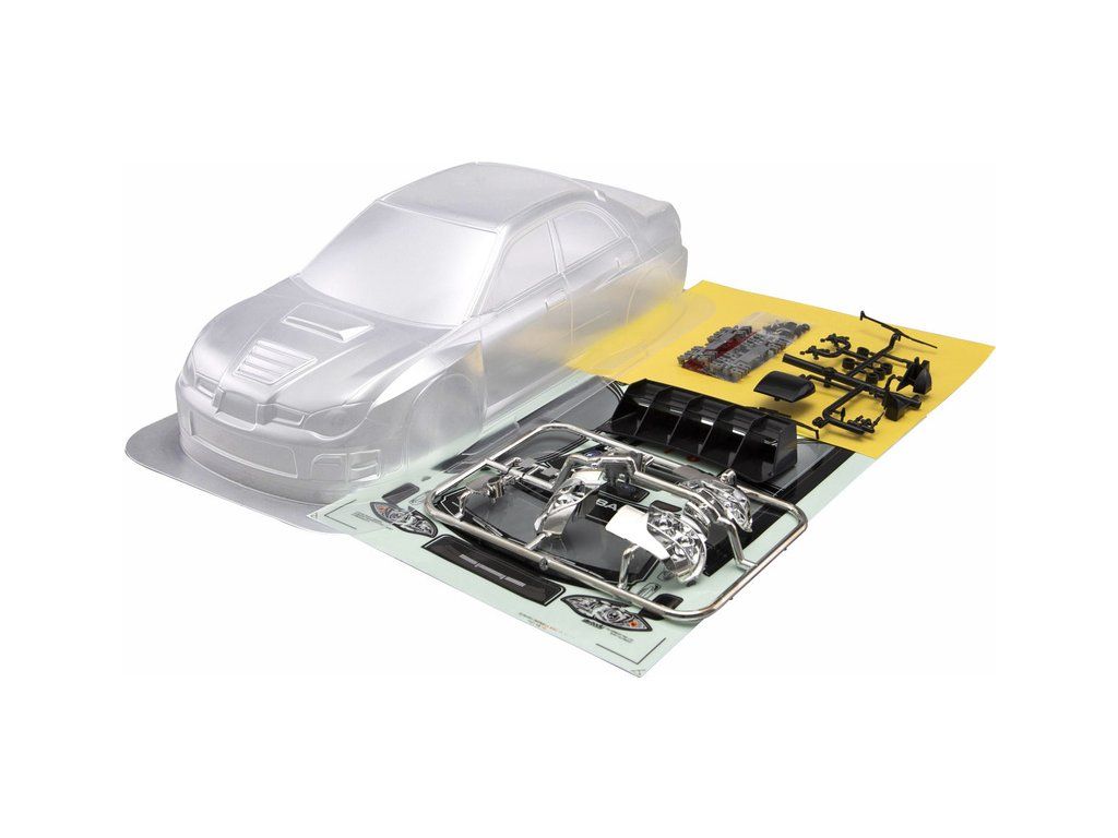 Obsahem balení je nenabarvená, neořezaná karosérie pro RC modely aut 1:10 Subaru Impreza WRC 2007 od Killerbody, příslušenství - masky oken, sada chromovaných dílů ( skla zrcátek, vedení výfuku, paraboly světlometů ), sada černých plastových dílů ( anténa, zrcátka, stěrače, křídlo), ostatní příslušenství ( sada šroubků, oboustranná lepící páska, arch samolepek...), obrázkový návod.