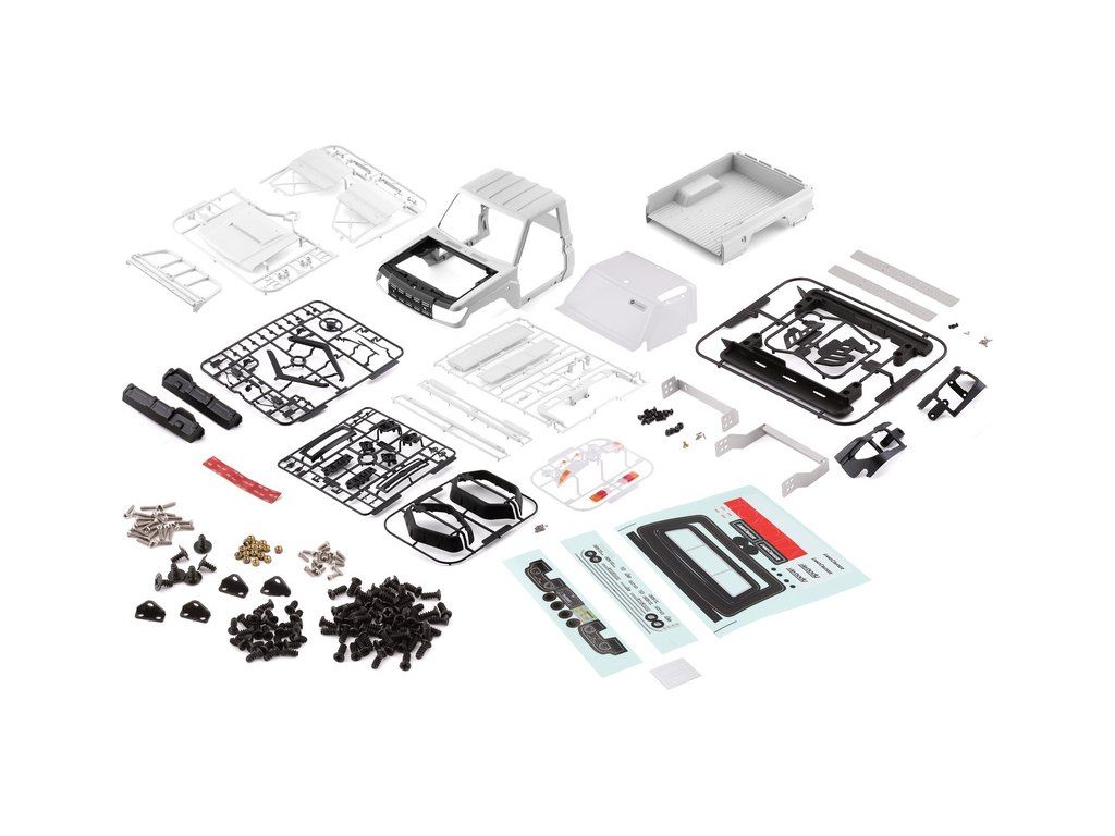Balení s karosérii Toyota Land Cruiser 70 obsahuje tyto součásti: kabinu, nákladový prostor, chromované díly, světlomety, přední nárazník, vstupy vzduchu, zrcátka, lexanové zasklení kabiny, volant, stěrač, potřebné příslušenství k sestavení, archy samolepek – na karosérii, přístrojovou desku, obrázkový návod…