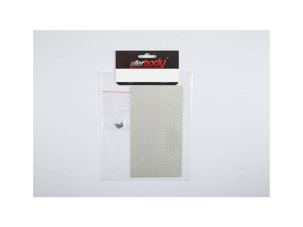 Killerbody Vám nabízí maketu protiskluzového plechu pro RC modely aut. Plech je z nerezové oceli o rozměru 162 x 88 x 0,1 mm v designeru tvaru běhounů ve stříbrném provedení.