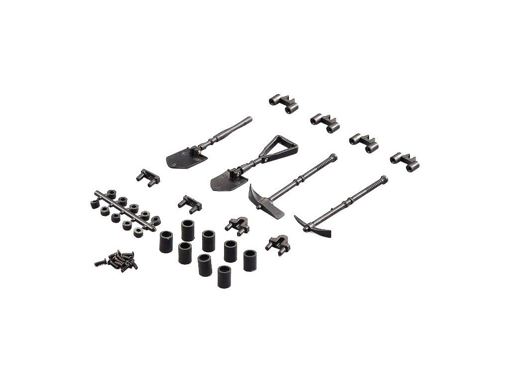 Doplněk ke karosériím RC modelů aut 1:10 od Killerbody v podobě sady nářadí. Sada je vyrobená z ABS materiálu v černém provedení. Obsahem balení je krumpáč, sekera, 2 x lopata, montážní sada.