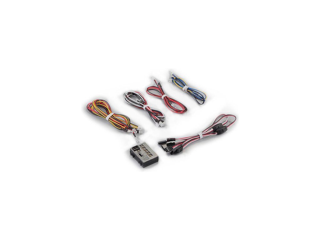 Balení obsahuje: řídící jednotku, 2 x 2 oranžové LED diody, 1 x 2 modré LED diody, 1 x 2 červené, LED diody, 2 x 2 bílé LED diody, 2 x Y-kabely - Rx/servo, Rx/regulátor. Originální a český návod.