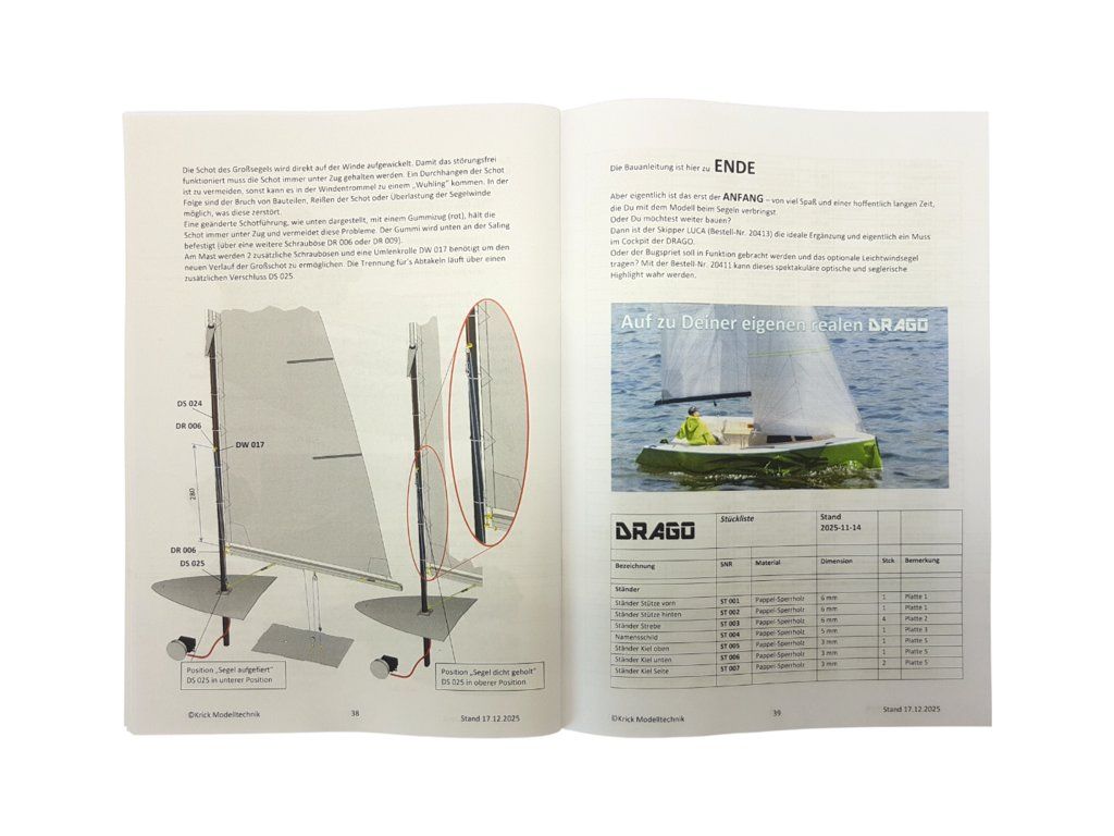 Stavebnice RC modelu lodi Krick Drago v měřítku 1:6. Moderní, sportovní, věrně zpracovaná plachetnice s laminátovým trupem a uhlíkovým stěžněm. Elektronika se prodává samostatně. Délka 1000mm.