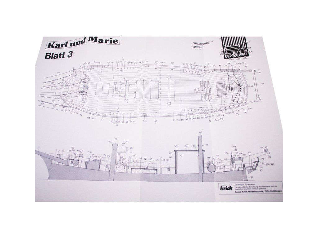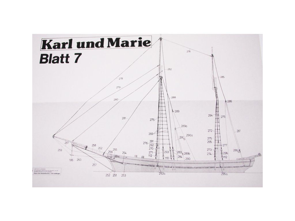 Stavebnice historického modelu lodi pro zručné modeláře Karl und Marie v měřítku 1:40. Vzor je typický baltický škuner, který byl používán kolem přelomu minulého století k přepravě zboží podél pobřeží. Stavebnice obsahuje předpracované dřevěné díly, sadu kování a plán s návodem.