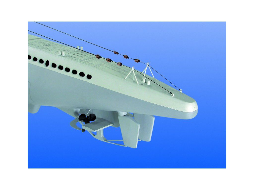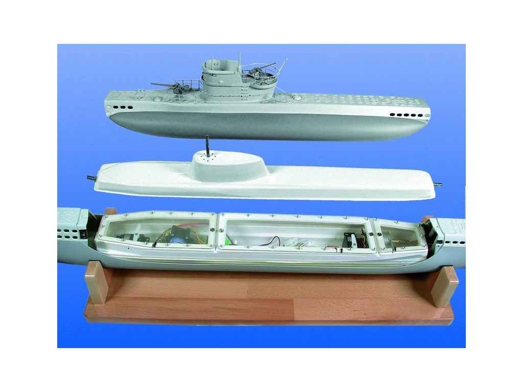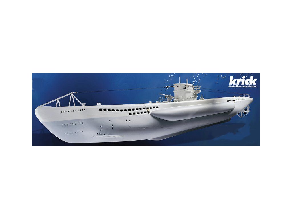 Stavebnice RC modelu ponorky na dálkové ovládání, Krick Ponorka U-Boot Typ VII kit. Model o délce 1120 mm lze postavit jako statickou maketu nebo funkční loď s dynamickým ponorem (nutno dokoupit sadu pro ponor). Konstrukce je z výlisků ABS, kování a zbraně jsou obsaženy v základní sadě.
