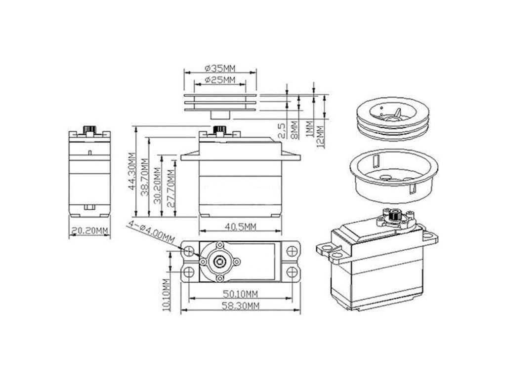 | Moment: | 12,1 kg.cm @ 4,8 V / 14,2 kg.cm @ 6 V |