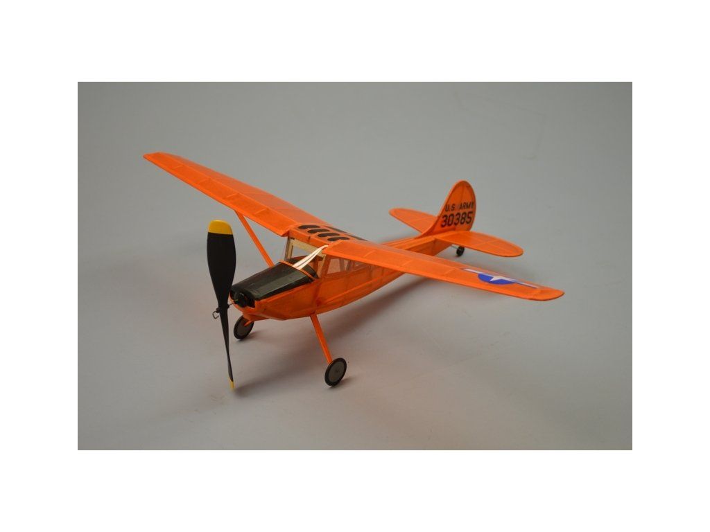 Stavebnice volně létající polomakety amerického průzkumného a spojovacího letadla určená pro pohon gumovým svazkem. Model je jednoduché klasické celobalsové konstrukce v rozsypu s laserem vyřezávanými dřevěnými díly, maketovými doplňky z vakuově tvářeného plastu a plastovými díly zhotovenými vstřikovým lisováním. Trup je konstruován běžnou minimaketářskou technologií - nejprve z balsových lišt sestavíte bočnice, které spojíte polopřepážkami a příčkami do příhradového rámu. Výsledné oblé tvary získáte po nalepení většího počtu tenkých podélníků. Křídla jsou klasické konstrukce z nosníků a žeber, ocasní plochy z balsových lišt a laserem vyřezávaných dílů.
