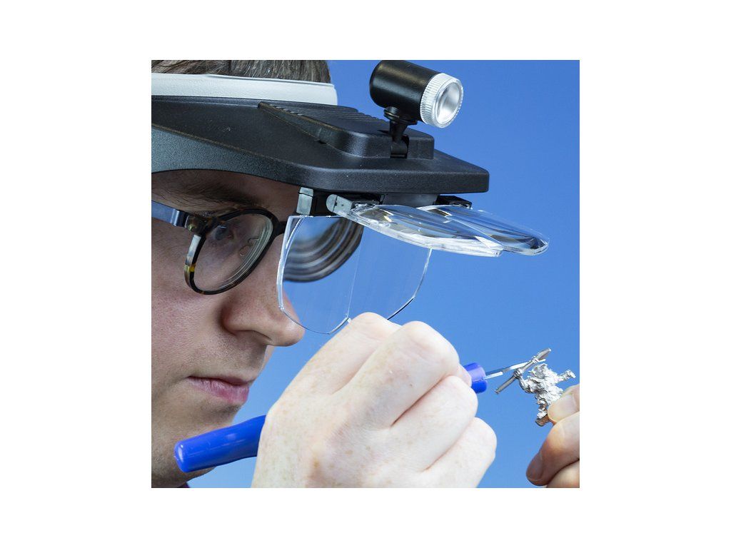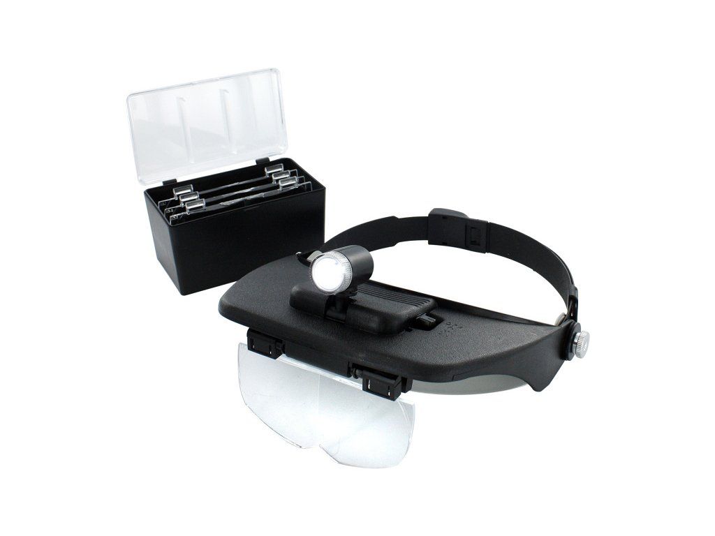 Lightcraft čelenka s lupou a LED osvětlením vám pomůže při detailní práci, když potřebujete mít volné ruce. Pružná čelenka je na každou velikost hlavy, v balení jsou 4 velikosti výměnných objektivů s ohniskovou vzdáleností od 75 mm do 500 mm. Zvětšení 1,2x až 3,5x.