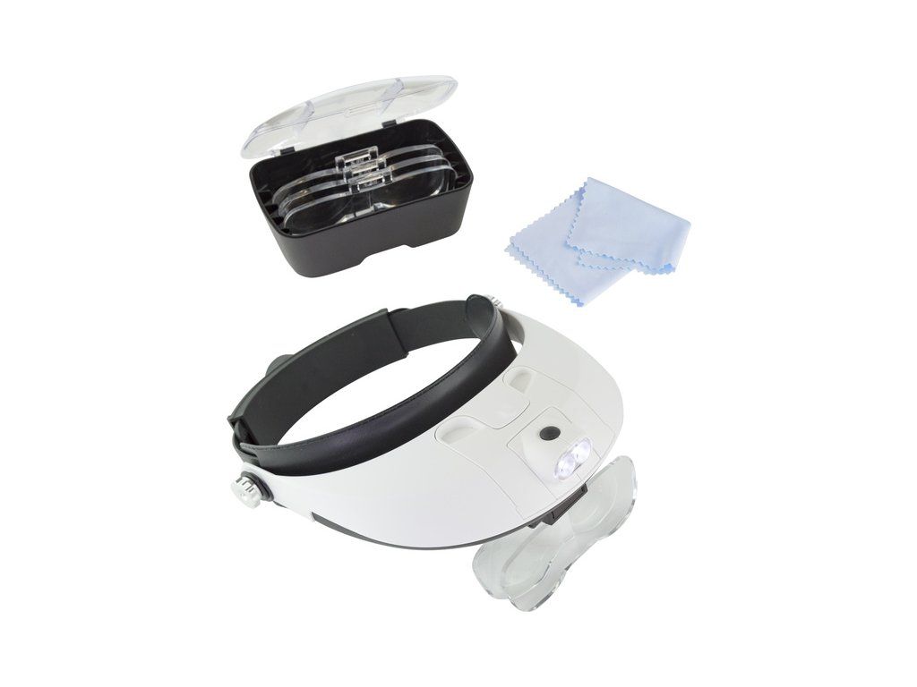 Lightcraft čelenka s lupou a LED osvětlením vám pomůže při detailní práci, když potřebujete mít volné ruce. Pružná čelenka je na každou velikost hlavy, v balení je 5 velikostí výměnných objektivů s ohniskovou vzdáleností od 60 mm do 350 mm. Zvětšení 1x až 6x. Možnost zdvojení objektivů.
