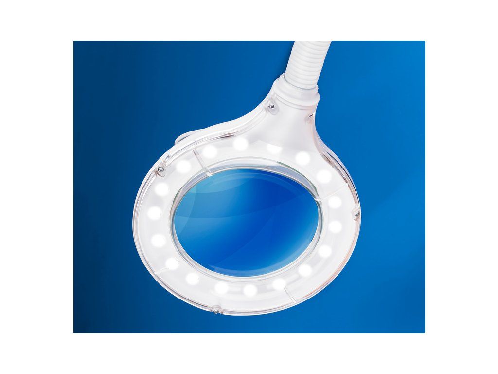 Lightcraft pracovní ohebná LED lampa, s lupou, osvětlením, polohovatelným ramenem stojanu a stabilním podstavcem je určena pro detailní práci. 30 bílých LED diod (2 W), kvalitní skleněná čočka o průměru 100 mm, zvětšení 3 dioptrie 1,75x. Ideální pro čtení, řemeslo a profi i hobby použití. Napájení ze sítě 220 - 240 V.