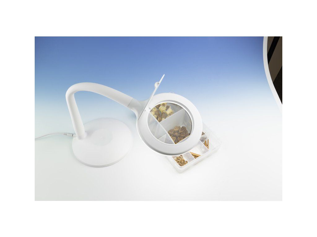 Lightcraft LED lampa s připojením do USB, lupou, flexibilním ramenem stojanu a stabilním podstavcem je určena pro detailní práci. Celkem tři možnosti intenzity osvětlení: měkké světlo 3000 K, jasné světlo 4000 K a denní světlo: 6100 K. 24 LED diod, kvalitní skleněná čočka velikosti 100 mm, zvětšení 1,75x.