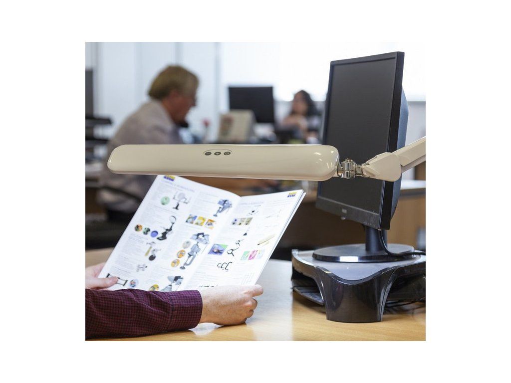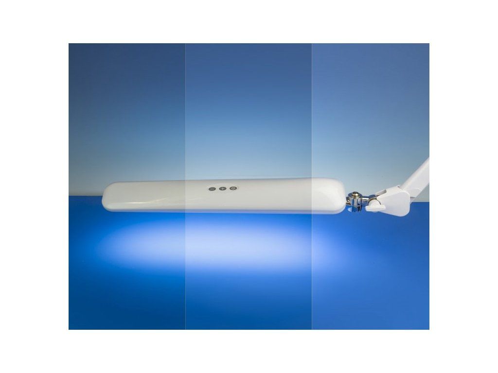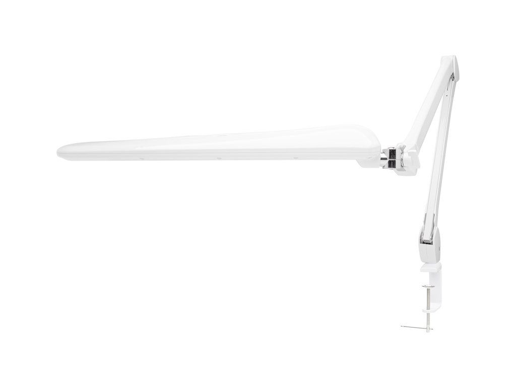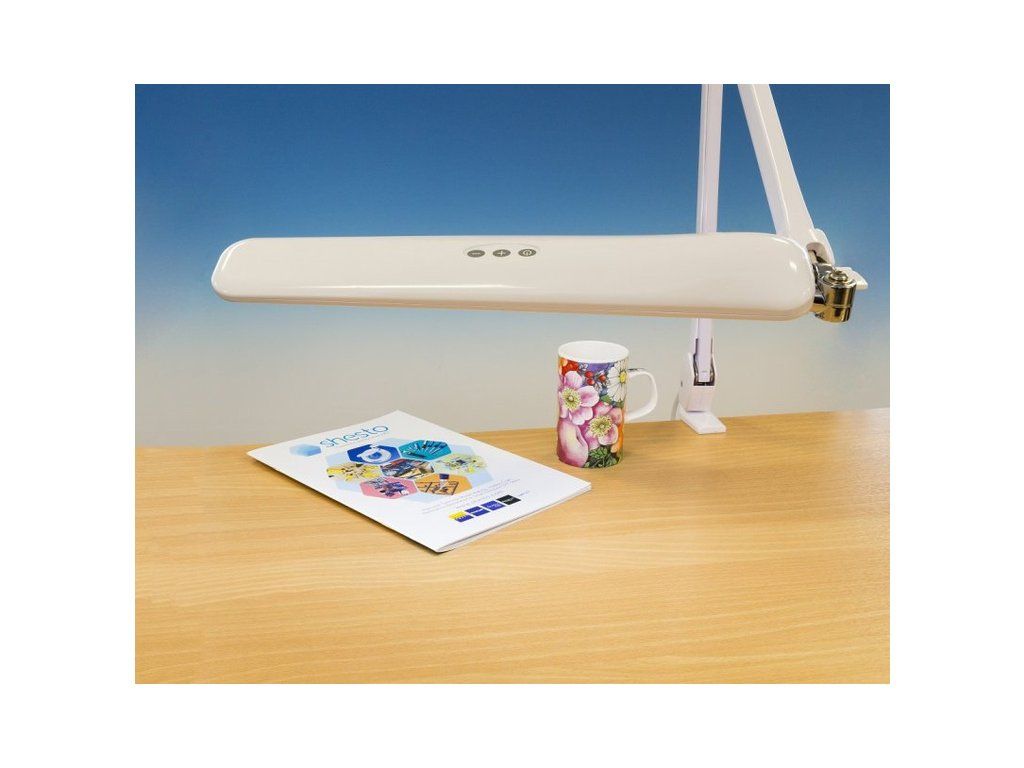 Profesionální pracovní svítilna Lightcraft stolní lampa 14,5 W se stmívačem, se štíhlou pracovní částí a otočnou hlavou, ideální pro osvětlení úzkých prostor nebo otočení o 90°. Obsahuje vestavěný stmívač pro všestranné osvětlení a správné vyvážení světla pro jakékoli prostředí. 90 bílých SMD LED, 6400 K. Robustní kovová polohovatelná ramena, svorka na stůl.