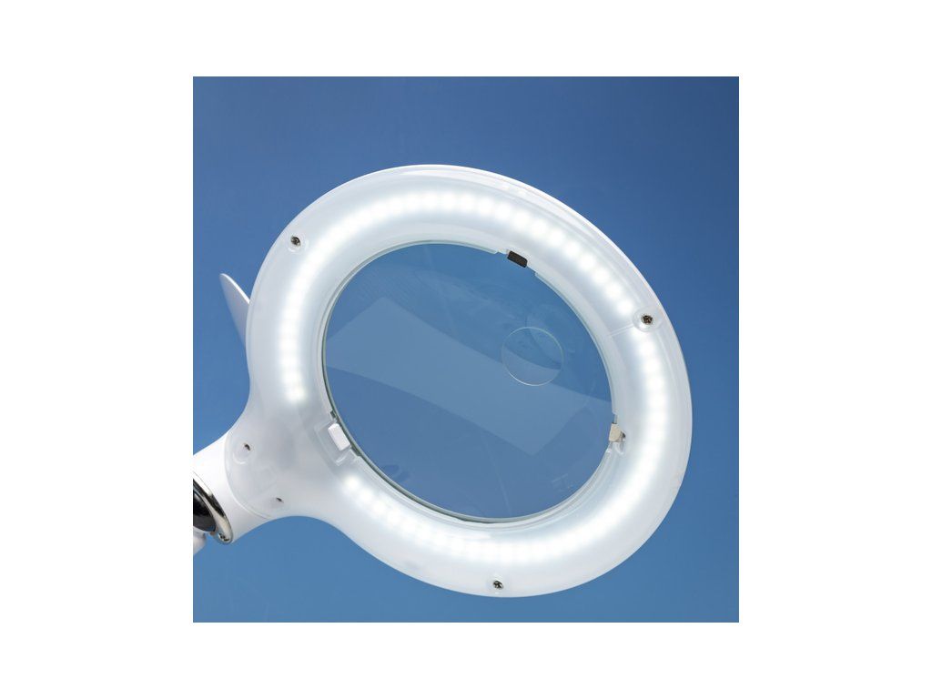 Lightcraft pracovní LED lampa s lupou 125mm, LED osvětlením a polohovatelným ramenem. Stabilní stojan obsahuje přihrádky pro nářadí.