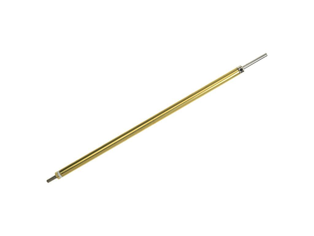 Lodní hřídel má celkovou délku 185mm, závit M4x9mm, Průměr trubky je 6mm, čep 3mm má délku 28mm, délka od dosedací plochy lodního šroubu po konec kroužku na hřídeli je 148mm. Lodní šroub se pojistí maticí M4. V trubce jsou kluzná ložiska, která je potřeba mazat lodním tukem.
